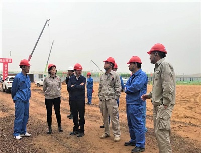 ??在中秋、国庆双节前夕,华球官网登录入口党委书记、董事长许缄涛到公司总承包的榆神能化50万吨/年煤基乙醇项目现场慰问调研。公司董事、总经理助理郑薇,总经理助理田平汉陪同调研。
