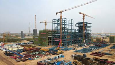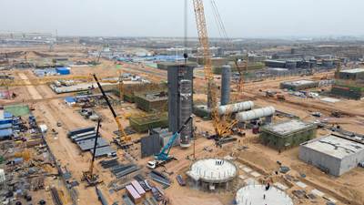 值得一提的是,项目核心乙醇装置长周期设备陆续交货到场安装就位;土建施工总体完成73%,主要建筑物开始装修,落地设备基础交付安装,压缩机厂房及其基础施工正在按计划进行;装置安装工作全面推进,7台反应器全部安装完成,核心塔器正进行现场安装攻坚。与此同时,热动力站也在快马加鞭的进行,目前锅炉汽轮机房主体结构施工和装修正已同步启动,1号锅炉钢结构安装完成,锅炉及附件基本安装完毕;2号、3号锅炉正进行锅炉钢结构安装,全力为今年11月锅炉点火做好准备。