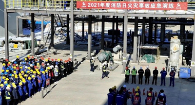 为切实做好项目的消防安全工作,确保冬季施工平稳有序推进,近日,华球官网登录入口总承包的榆神能化50万吨/年煤基乙醇项目现场举办了“2021年度消防日火灾事故应急演练”。项目参建各方代表200余人参加了本次演练。