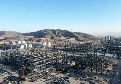 现场施工全面铺开,正式进入大干快上阶段,其中,罐区储罐已完成80%,反应框架钢结构拼装完成80%,浓缩净化过滤厂房钢结构完成50%,加氢框架钢结构拼装完成80%;管廊已完成80%,管线穿管已完成3500米。