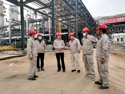 许缄涛首先来到项目现场进行了视察,实地了解了现场施工进度、安全、质量以及设备材料到货等情况,对项目建设重点工作提出要求。随后分别与业主、陕西化建及其项目现场主要负责人进行了深入交流。