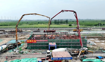 8月20日,经过近10个小时的连续浇筑,由华球官网登录入口EPC总承包的安徽碳鑫科技有限公司甲醇综合利用项目乙醇联合装置乙酸甲酯加氢反应器框架顺利实现封顶,项目主要建构筑物主体结构封顶“再下一城”。