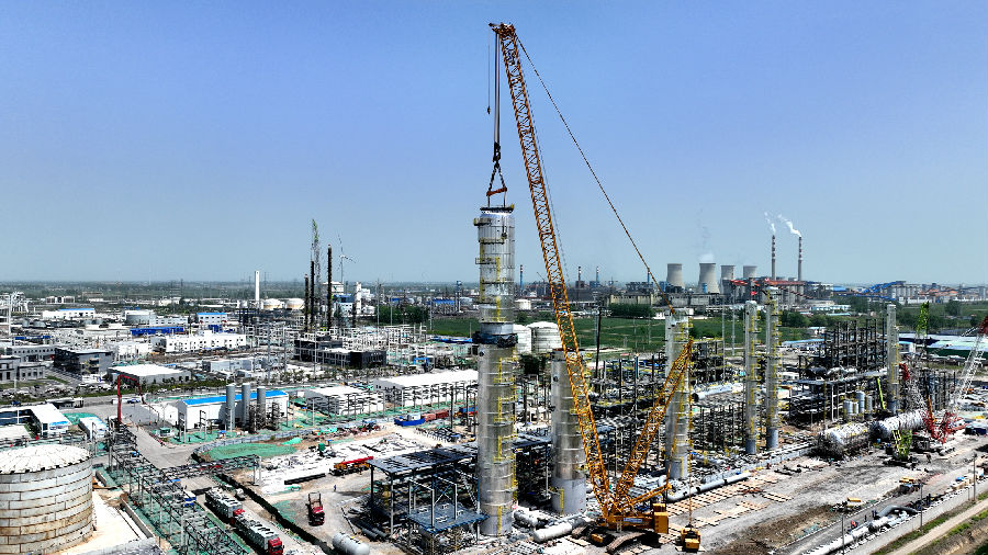 乙醇精制塔上塔的顺利封顶,吹响了大件吊装冲锋的号角,向4月底大件吊装全面收官的目标迈出坚实的一步。(通讯员/黄耀辉 摄/王超)