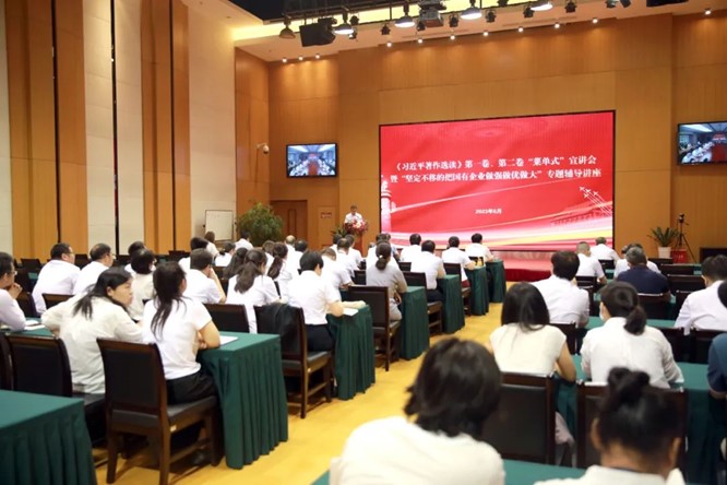 为深入开展学习贯彻习近平新时代中国特色社会主义思想主题教育,6月15日,华球官网登录入口举办《习近平著作选读》第一卷、第二卷“菜单式”宣讲会暨坚定不移的把国有企业做强做优做大专题辅导讲座,邀请中共陕西省委党校(陕西行政学院)方欣教授进行授课。公司党委书记、董事长许缄涛出席会议,党委副书记、工会主席景建民主持会议。
