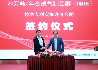 随后,荆门源晗公司总经理周虎,延长中科(大连)能源科技股份有限公司总经理王辉代表双方签署了20万吨/年合成气制乙醇(DMTE)技术专利实施许可合同并分别致辞。签约仪式结束后,召开了项目设计开工会,与会人员对设计方案进行了深入交流。