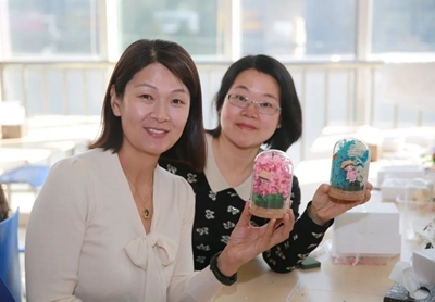 为增强庆祝活动的趣味性、挑战性、协作性,组织开展手工制作“永生花”体验活动。活动中,工作人员提前将材料进行分类准备好,并详细讲解“永生花”的制作流程和技巧。大家边学边交流经验,以塑刀为针,以胶水为线,纷纷动起手来,倾力展示自己丰富的想象力和创造力,将工作中的细心、专心、耐心投入到“永生花”的制作上。经过个把小时,女职工们制作出了一朵朵精美的“永生花”,看着自己亲手制作的作品,大家脸上洋溢着满满的成就感和幸福感。火热的氛围,也将此次“三八”节活动推向了高潮。