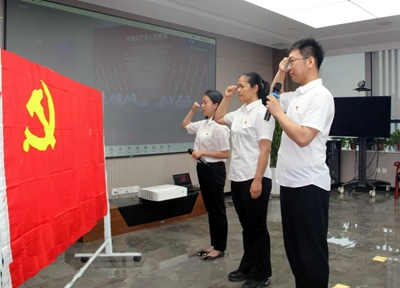 大会在庄严的国歌声中拉开帷幕,全体参会干部、职工着装整齐、昂首肃立。面对鲜红的党旗,预备党员在公司党委副书记、总经理田伟同志的领誓下,庄严宣誓,掷地有声地表达了对党的无限忠诚和崇高敬意。