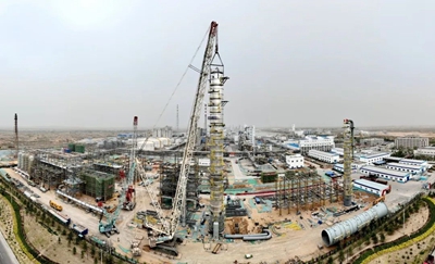 五一国际劳动节前夕,由华球官网登录入口EPC总承包的陕西延长石油榆林凯越煤化有限责任公司50万吨/年甲醇制乙醇项目核心设备——预分离塔第三段顺利完成吊装,标志着该项目首台分段式吊装塔器成功封顶,为后续工程建设奠定了坚实基础。