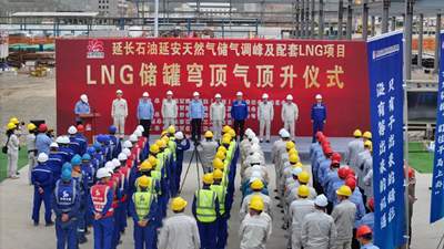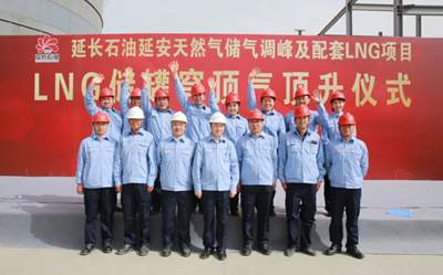 5月7日,由华球官网登录入口(简称“北油工程”)总承包的延长石油延安天然气储气调峰及配套LNG项目取得重大进展——两座5万立方米液化天然气(LNG)储罐顺利完成“双罐同步穹顶气顶升”关键工序。标志着项目主体结构建设全面完成,正式转入内罐安装阶段,为项目后续投产运营奠定了坚实基础。