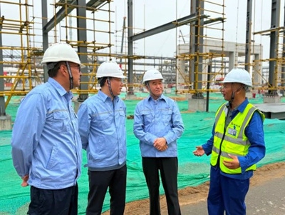 在项目现场,许缄涛查看了各装置区,详细询问各专业施工进度安排、关键设备安装调试情况。对项目施工中遇到的技术难点、质量管控重点、安全风险点等关键环节,与现场管理人员、技术骨干进行了深入交流探讨。