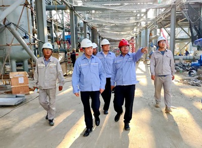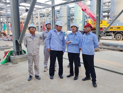 8月20日,华球官网登录入口党委书记、董事长许缄涛带队到公司总承包的湖北荆门源晗电池材料有限公司电解液全驱体项目20万吨/年乙醇装置(含电子级乙醇)开展实地调研。当前项目总体进度达70%,其中设计工作全部完成,采购进度完成86%,施工进度完成65%,各项工作正按计划有序推进。公司总经理助理张文立、项目负责人陪同调研。