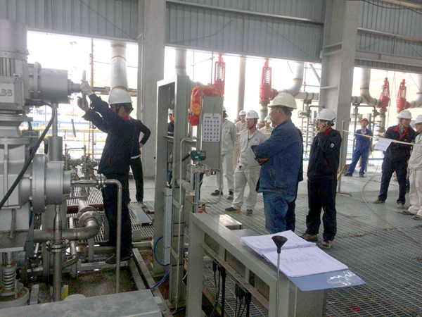 为顺利完成两台压缩机负荷试车,项目组抽调技术骨干,配合业主对界区介质(中压蒸汽、氮气、仪表风、循环水等)运行参数、提前启动汽轮机暖机、防喘振系统调试及模拟测试、一二三级系统管支架、仪表运行及参数等环节逐一进行了核查。在完成机组、系统、安全等相应手续签字后,下午16时35分,丙烯制冷压缩机组开始负荷试车,经过3个小时的平稳运行后,中控显示系统温度、压力、机组振动值均在正常运行范围内。随后,试车团队又开始乙烯制冷压缩机机组的负荷试车。晚上22时10分,该设备运行平稳,各项参数运行数据正常,试车一次成功。至此,ACO装置同日完成了两台压缩机试车任务。